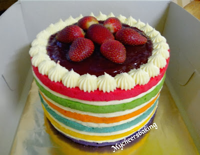 My client requested Rainbow cake with a very thin layer cheese with Oreo Biscuit and no Green Color in cake!! hope she liked.